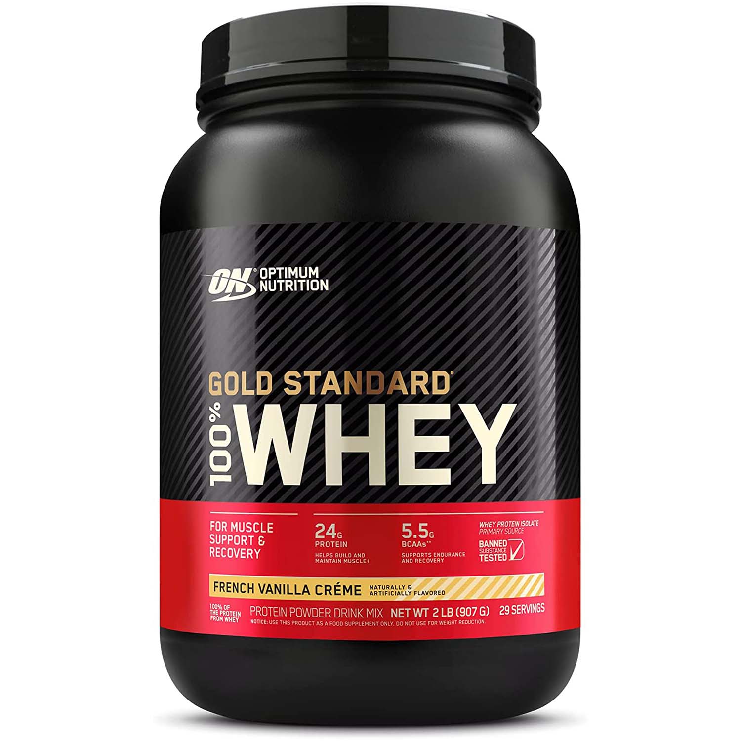 بروتين مصل الحليب Optimum Nutrition Gold Standard 100% بنكهة الفانيليا الفرنسية هو مكمل بروتين عالي الجودة مصمم لدعم بناء العضلات واستعادتها. تحتوي هذه الحاوية سعة 2 رطل على بروتين مصل اللبن المعزول كمصدر أساسي، والمعروف بنقائه وامتصاصه السريع. توفر كل حصة أحماض أمينية أساسية، بما في ذلك الأحماض الأمينية المتفرعة السلسلة (BCAAs): الليوسين والأيسولوسين والفالين، والتي تعتبر ضرورية لإصلاح العضلات ونموها.