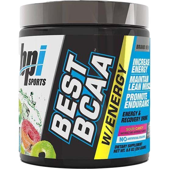 BPI Sports Best BCAA Energy, Sour Candy، 25 حصة، هو مكمل شامل مصمم لدعم بناء العضلات الخالية من الدهون، والتعافي، والترطيب، والطاقة. تجمع هذه الصيغة بين الأحماض الأمينية المتفرعة السلسلة (BCAAs) مع التيروزين، ومستخلص الشاي الأخضر، والكافيين اللامائي، وAlpha GPC. تعمل هذه المكونات معًا لتوفير الطاقة والتركيز والأداء دون التسبب في حدوث أعطال أو آثار جانبية متوترة.