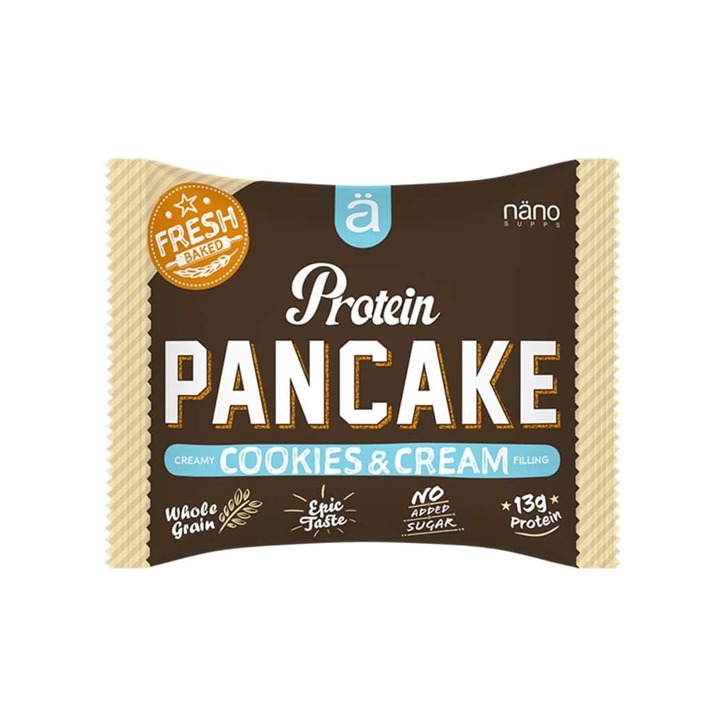 NanoSupps Protein Pancake, Cookies and Cream، 45 جم، هي وجبة خفيفة موجهة للياقة البدنية مصممة لأولئك الذين يستمتعون بالحلويات دون المساس بأهدافهم الغذائية. كل فطيرة مصنوعة من بروتين UltraWhey (VOLAC Volactiv)، ودقيق القمح الكامل، وبيض المزارع، مما يضمن مصدر بروتين عالي الجودة. تتكون الحشوة من كريمة البروتين المخفوقة، مما يوفر طعمًا لذيذًا ومرضيًا.