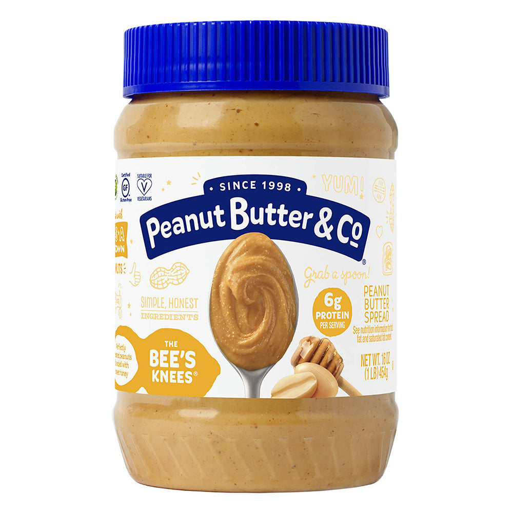 زبدة الفول السوداني وشركاه زبدة الفول السوداني، The Bees Knees، 1LB، هي خيار شائع لعشاق زبدة الفول السوداني. هذا المنتج مصنوع من الفول السوداني عالي الجودة، ممزوجًا مع قليل من الملح وقليل من سكر القصب. للحفاظ على التماسك ومنع انفصال الزيت، تتم إضافة كمية صغيرة من زيت النخيل، مما يلغي الحاجة إلى التحريك.