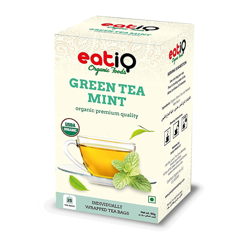 يقدم Eatiq Organic Foods Green Tea Mint خيار المشروبات المنعشة والمعززة للصحة. يحتوي كل صندوق على 25 كيس شاي، مصنوع من مكونات عضوية 100%. الشاي حاصل على شهادة وزارة الزراعة الأمريكية، مما يضمن معايير عضوية عالية الجودة. وهو خالي من منتجات الألبان والجلوتين والقمح والمكسرات وفول الصويا والكافيين، مما يجعله مناسبًا لمختلف الاحتياجات الغذائية.