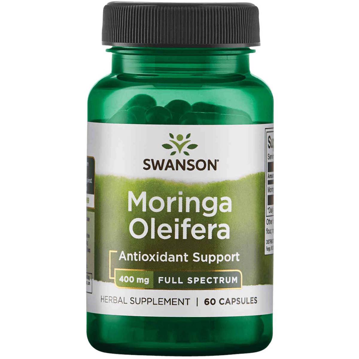 يقدم Swanson Full Spectrum Moringa Oleifera جرعة 400 مجم في كل كبسولة من 60 كبسولة. يستخدم هذا الملحق شكل الورقة الكاملة لشجرة المورينغا أوليفيرا، المعروفة باسم شجرة "عصا الطبل". المورينغا أوليفيرا معروفة عالميًا بقيمتها الغذائية ومغذياتها النباتية المعززة للصحة. وغالباً ما توصي منظمات الإغاثة الدولية به لمكافحة الجوع وتحسين الصحة في المناطق الفقيرة.