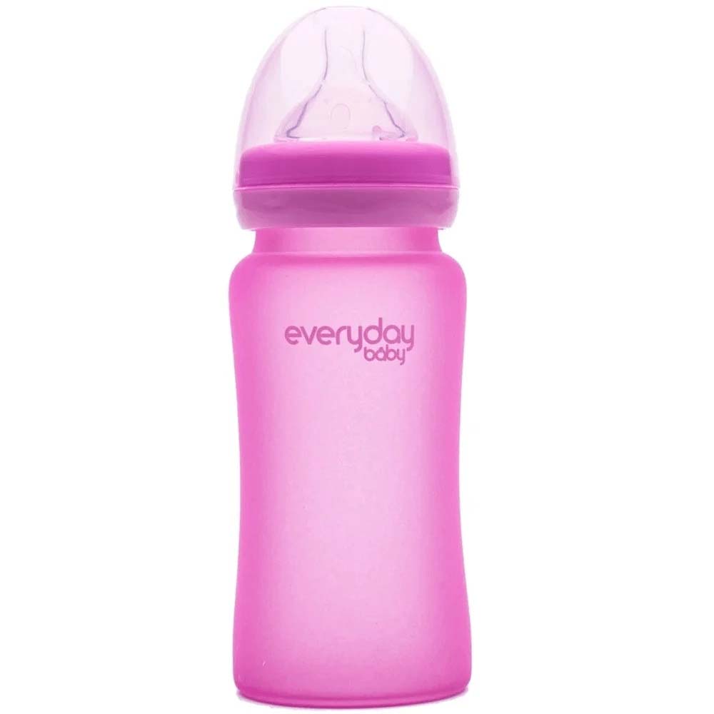 زجاجة رضاعة زجاجية للأطفال، حساس للحرارة، وردي، 240 مل من إيفري داي بيبي