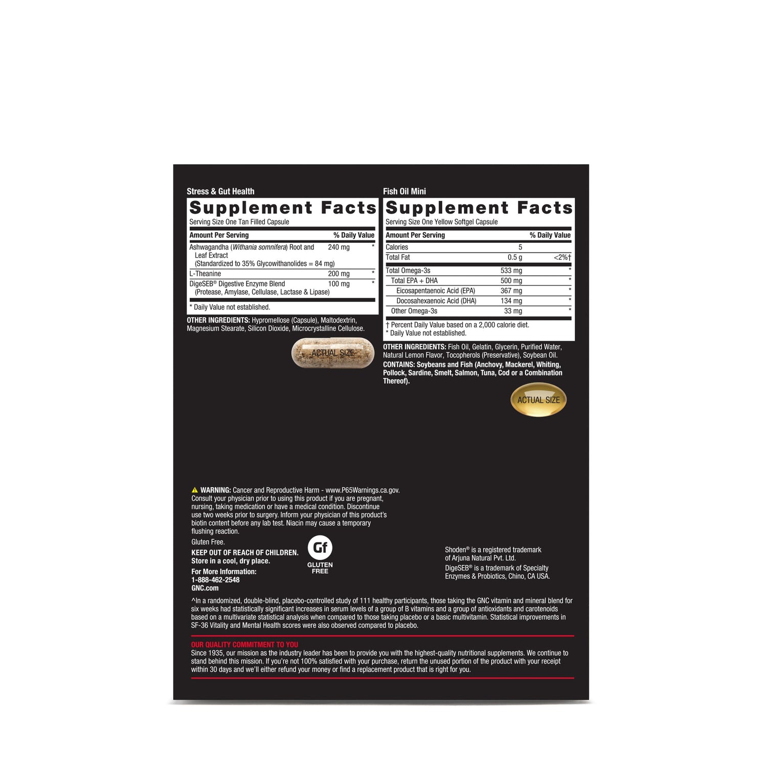 ارفع مستوى رحلتك الصحية اليوم مع GNC Mega Mens Stress Relief Vitapak - لأن إدارة التوتر يجب أن تكون بسيطة مثل تناول الفيتامينات اليومية.