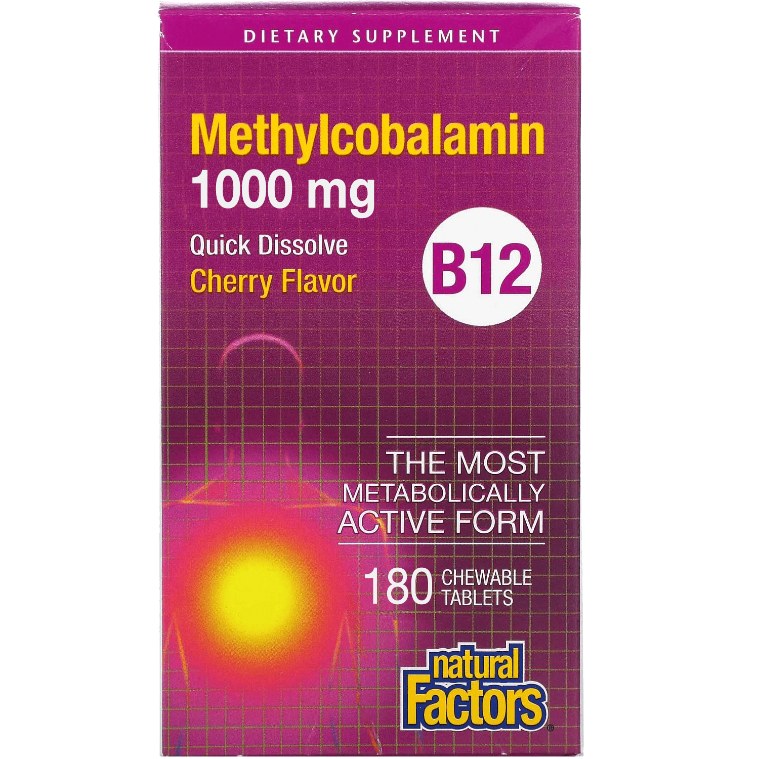 Natural Factors ميثيل كوبالامين ب12، 1000 ميكروجرام، 180 قرصًا قابلاً للمضغ