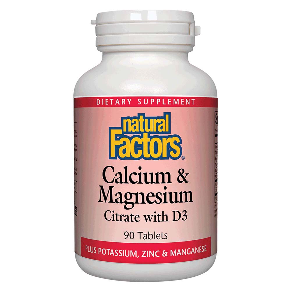 سيترات الكالسيوم والمغنيسيوم مع د3 بالإضافة إلى البوتاسيوم والزنك والمنغنيز، 90 قرصًا - عوامل طبيعية