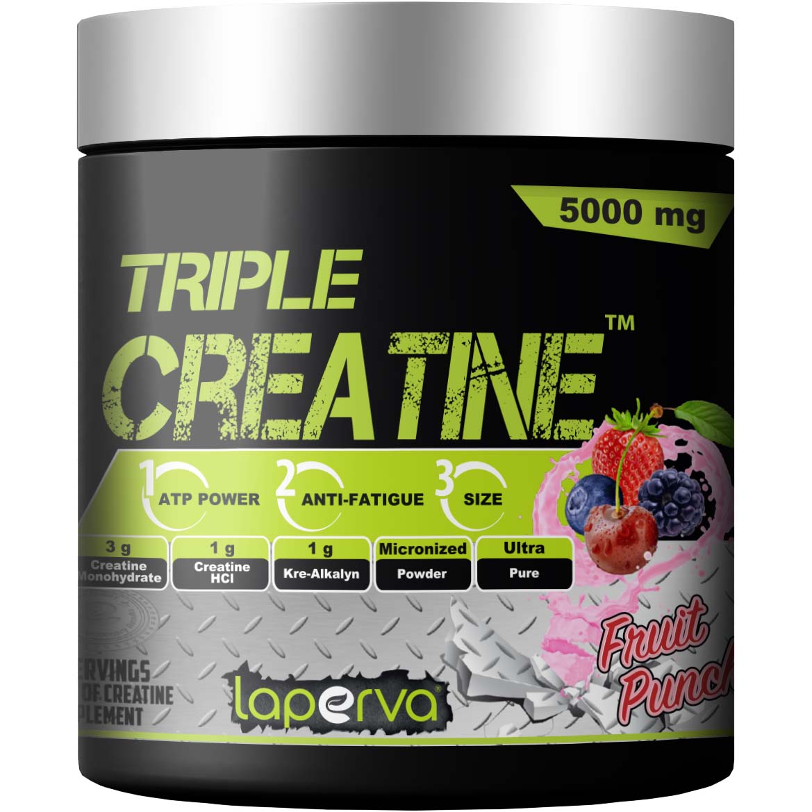 لابيرفا تريبل كرياتين، فواكه بانش، 60 حصة، هو مكمل غذائي مصمم لدعم نمو العضلات وتعزيز القوة وتحسين أداء التمارين الرياضية. يحتوي هذا المنتج على مزيج من ثلاثة أنواع من الكرياتين: 0.5 جرام من كرياتين HCL، و4 جرام من الكرياتين مونوهيدرات، و0.5 جرام من الكرياتين القلوي. تعمل هذه الأشكال من الكرياتين معًا لتحفيز إنتاج الطاقة ومقاومة الإجهاد البدني وزيادة حجم العضلات.