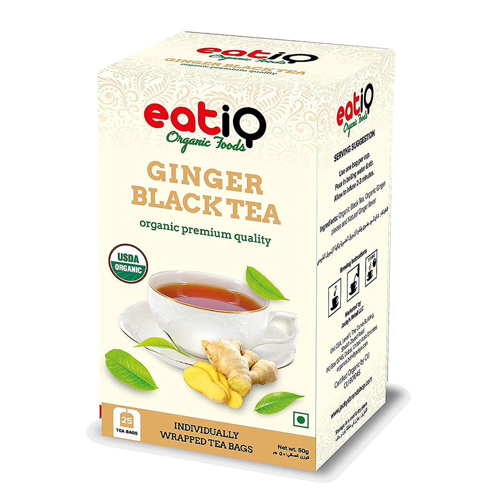 يقدم شاي الزنجبيل الأسود من Eatiq Organic Foods تجربة الشاي الأسود التقليدية المعززة بطعم الزنجبيل المنعش. يحتوي هذا المنتج على 25 كيس شاي، كل منها مملوء بمكونات عضوية 100%. الشاي عضوي معتمد من وزارة الزراعة الأمريكية، وغير معدل وراثيًا، وحلال. وهو خالي من منتجات الألبان والجلوتين والقمح والمكسرات وفول الصويا والكافيين، مما يجعله مناسبًا لمختلف الاحتياجات الغذائية.