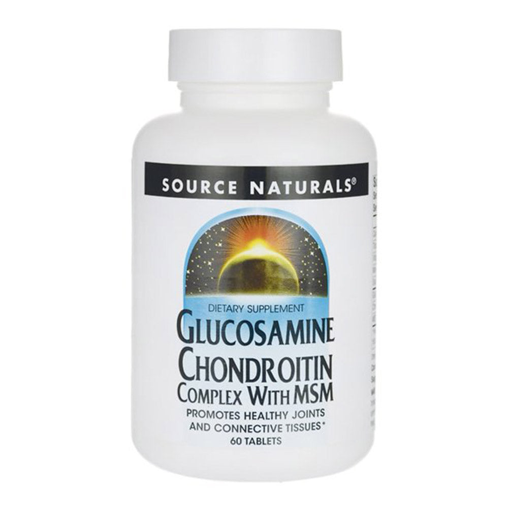 Source Naturals Glucosamine Chondroitin Complex مع MSM هو مكمل غذائي مصمم لدعم صحة الأنسجة المشتركة والضامة. تحتوي كل زجاجة على 60 حبة. يجمع المنتج بين أربعة مكونات رئيسية: الجلوكوزامين، والكوندرويتين، وMSM (ميثيل سلفونيل ميثان)، وفيتامين C.