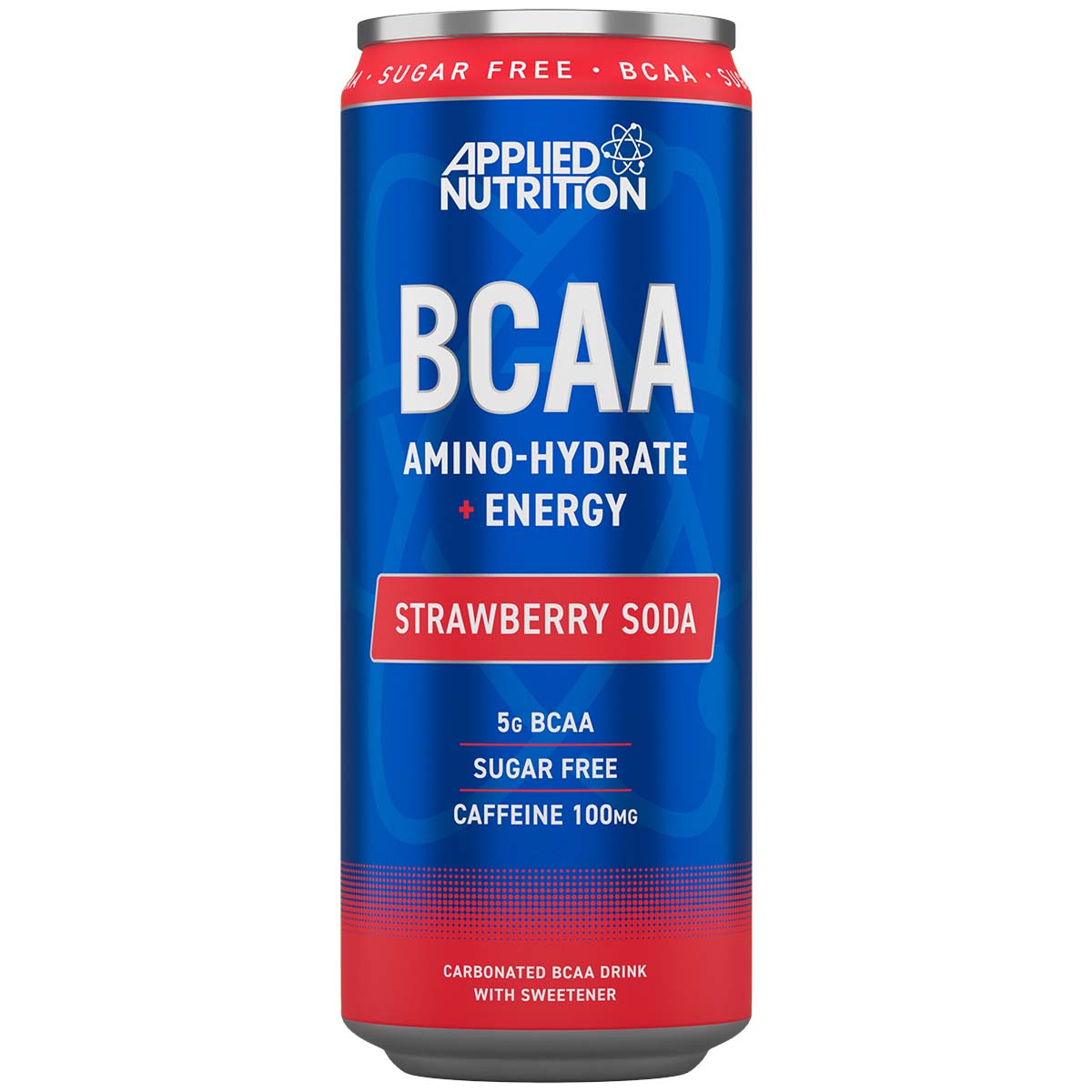 Applied Nutrition BCAA Amino Hydrate plus Energy in Strawberry Soda flavor is a carbonated beverage designed for those seeking a sugarfree, lowcalorie option. Each can delivers 5 grams of Branched Chain Amino Acids (BCAAs) and 100 milligrams of caffeine, providing both muscle support and an energy boost. This product is glutenfree, allergenfree, and veganfriendly, making it suitable for a wide range of dietary needs. Additionally, it is Halal certified. The beverage is ideal for consumption before or after workouts, or anytime you need an extra burst of energy.