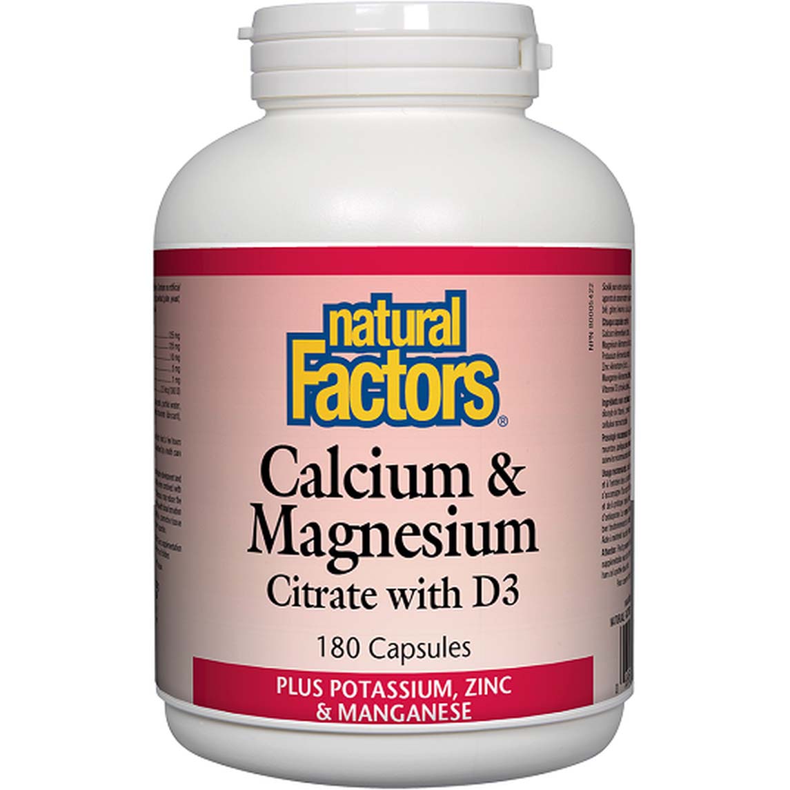 Calcium & Magnesium Citrate with D3 Plus Potassium, Zinc & Manganese, 180 Capsules - Natural Factors