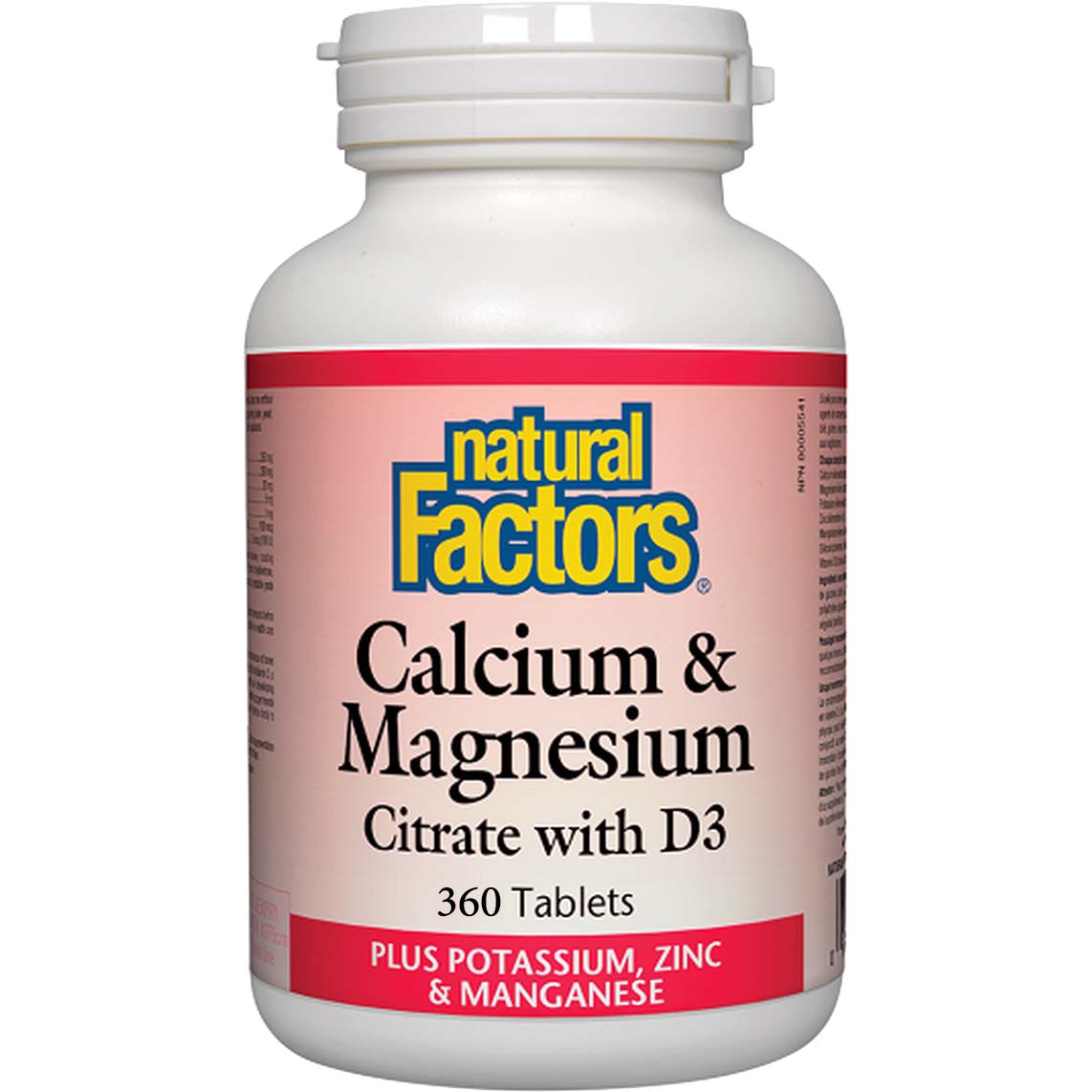 Calcium & Magnesium Citrate with D3 Plus Potassium, Zinc & Manganese, 360 Tablets - Natural Factors - Natural Factors