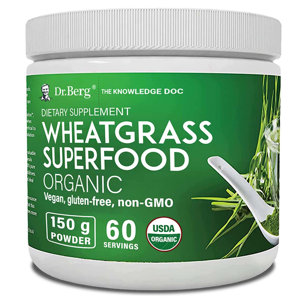 Dr. Berg Organic WheatGrass Superfood is a nutrientdense raw wheatgrass juice powder. Sourced from nutrientrich soil that was once an ancient seabed, this product offers a deep green color and soothing taste. Each 150gram container provides 60 servings.