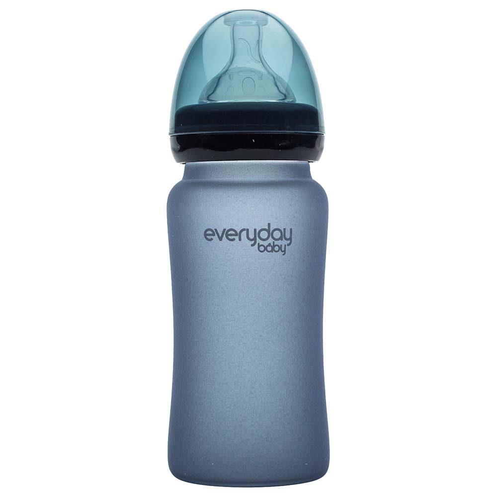 Everyday Baby Glass Heat Sensing Baby Bottle, 240 ML, Blueberry - Everyday Baby