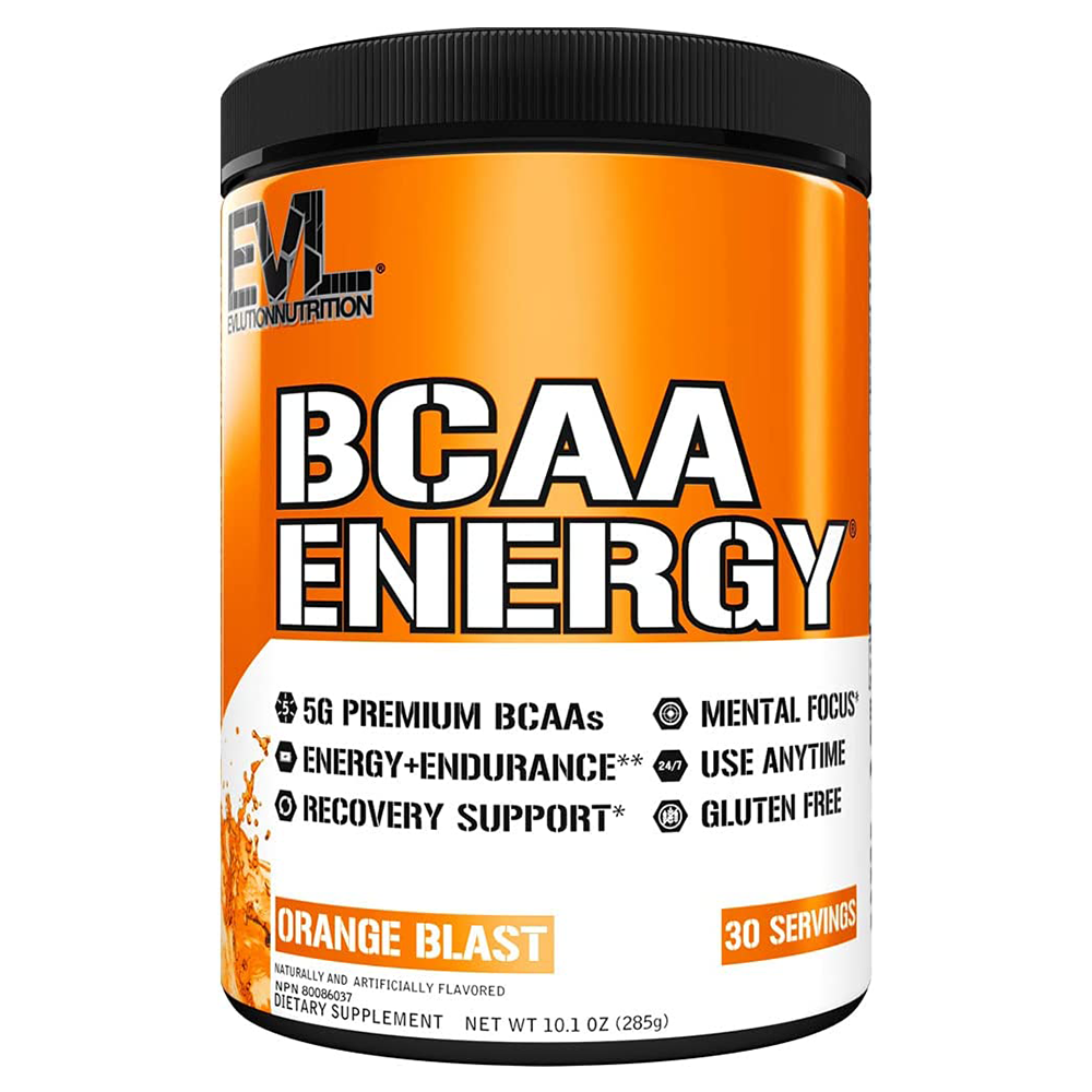 Evlution Nutrition BCAA Energy, Orange Blast, is a comprehensive Branched Chain Amino Acid (BCAA) supplement designed to support energy, focus, muscle building, and recovery. Each serving provides 5 grams of pure BCAAs in a 2:1:1 ratio of Leucine, Isoleucine, and Valine, which is the most researched ratio for muscle support and recovery.