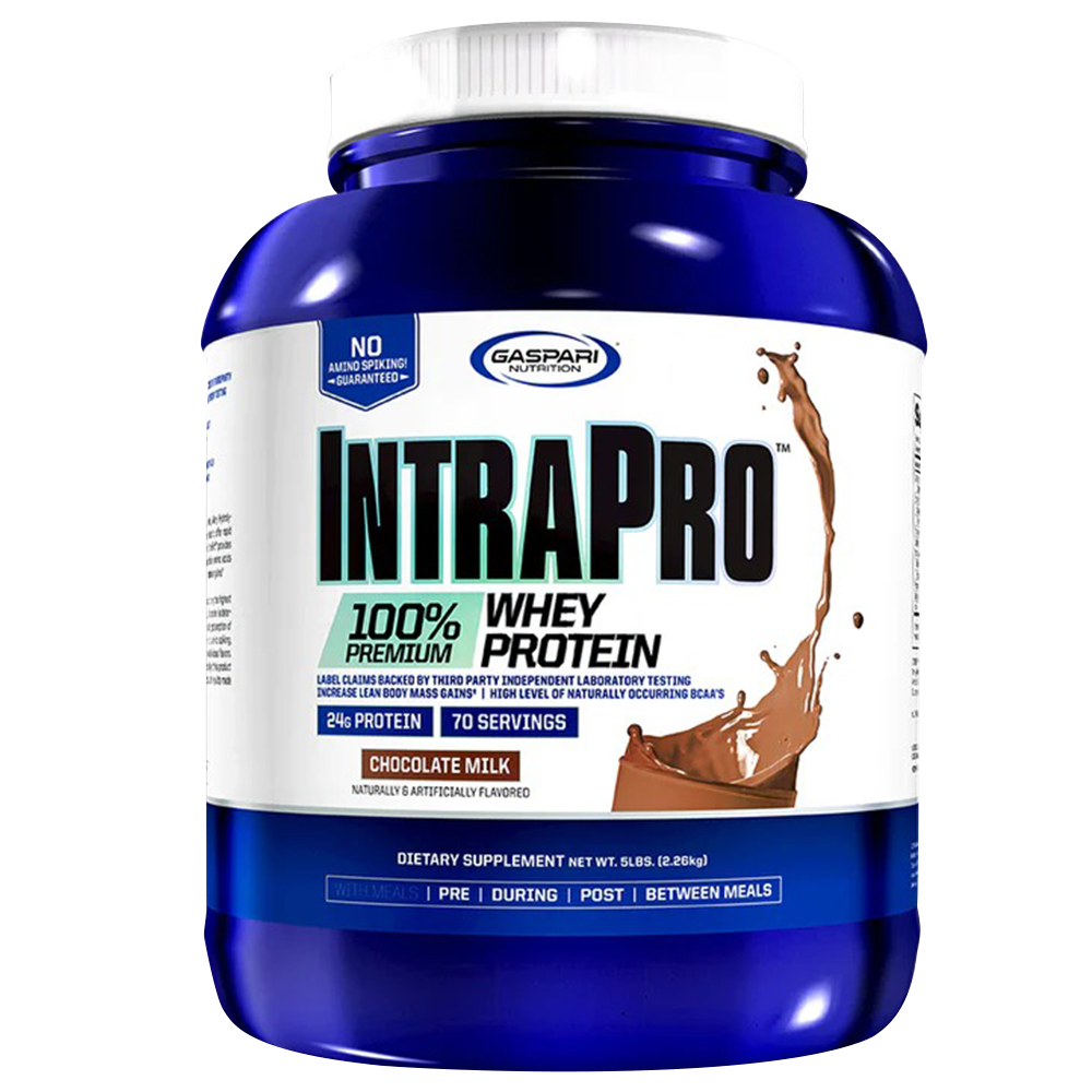 Gaspari Nutrition IntraPro, Chocolate Milk, 5 LB, is a premium whey protein supplement designed for serious athletes and bodybuilders. It features a 100% whey protein matrix composed of Whey Isolates, Whey Hydrolysates, and Whey Concentrates. This scientifically formulated blend ensures rapid digestion and superior bioavailability, which helps maximize lean muscle growth.