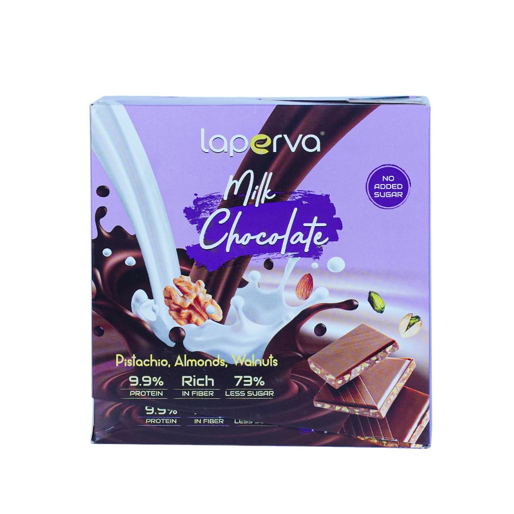 Laperva Milk Chocolate Pistachio, Almonds and Walnuts No Added Sugar Chocolate Bar, Box of 12 Bars