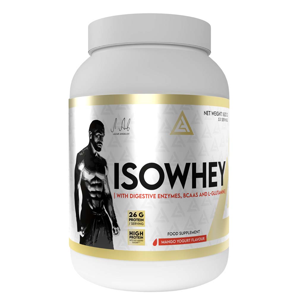 Lazar Nutrition Isowhey, Mango Yogurt, 3.5 LB, is a highquality whey protein supplement designed to support muscle growth and recovery. Each serving provides 26 grams of protein, making it an efficient way to increase daily protein intake. The product contains 86% protein and is free from added sugars, ensuring a clean source of nutrition.