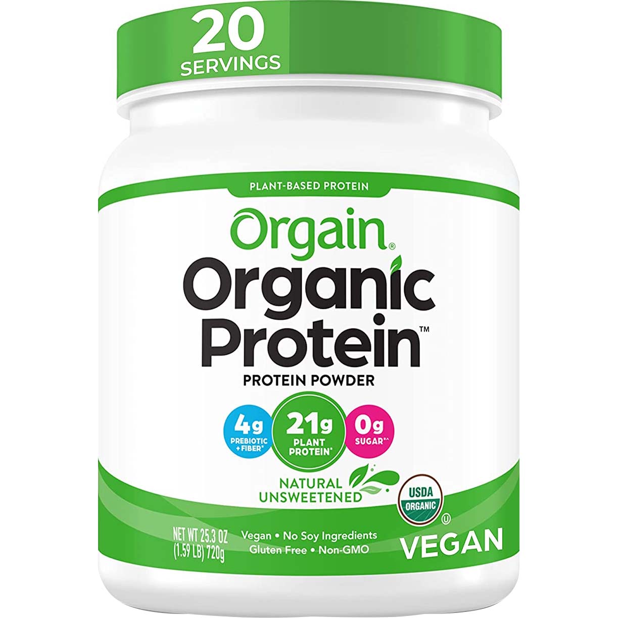 Orgain Organic Plant Based Protein, Natural Unsweetened, 1.59 Lb