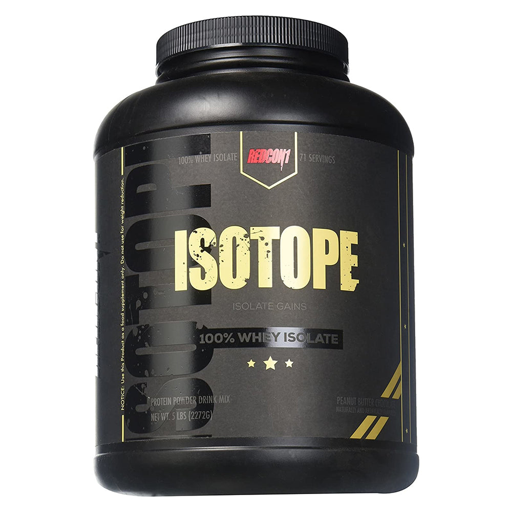 Redcon1 Isotope, Chocolate Peanut Butter, 5 LB, is a highquality whey protein isolate designed for optimal muscle building and recovery. Each serving contains 100% whey protein isolate, derived from premium milk sourced from some of the healthiest and cleanest dairies globally. This ensures a pure, highprotein shake that supports muscle growth and repair.