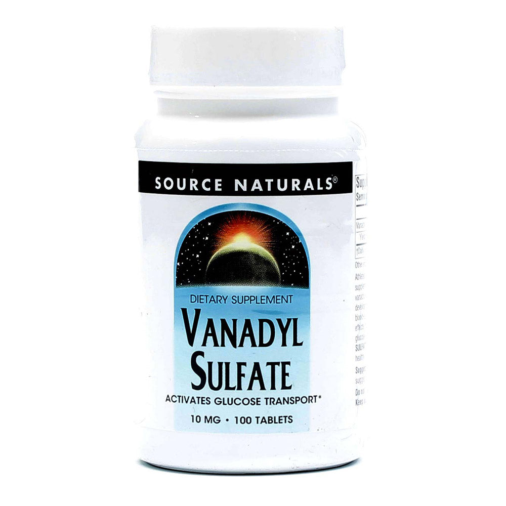 Source Naturals Vanadyl Sulfate, 10 mg, 100 Tablets, is a dietary supplement containing vanadyl sulfate, a form of the trace element vanadium. Vanadium is essential for normal growth and development. This product is commonly used by athletes as part of their daily supplementation regimen.