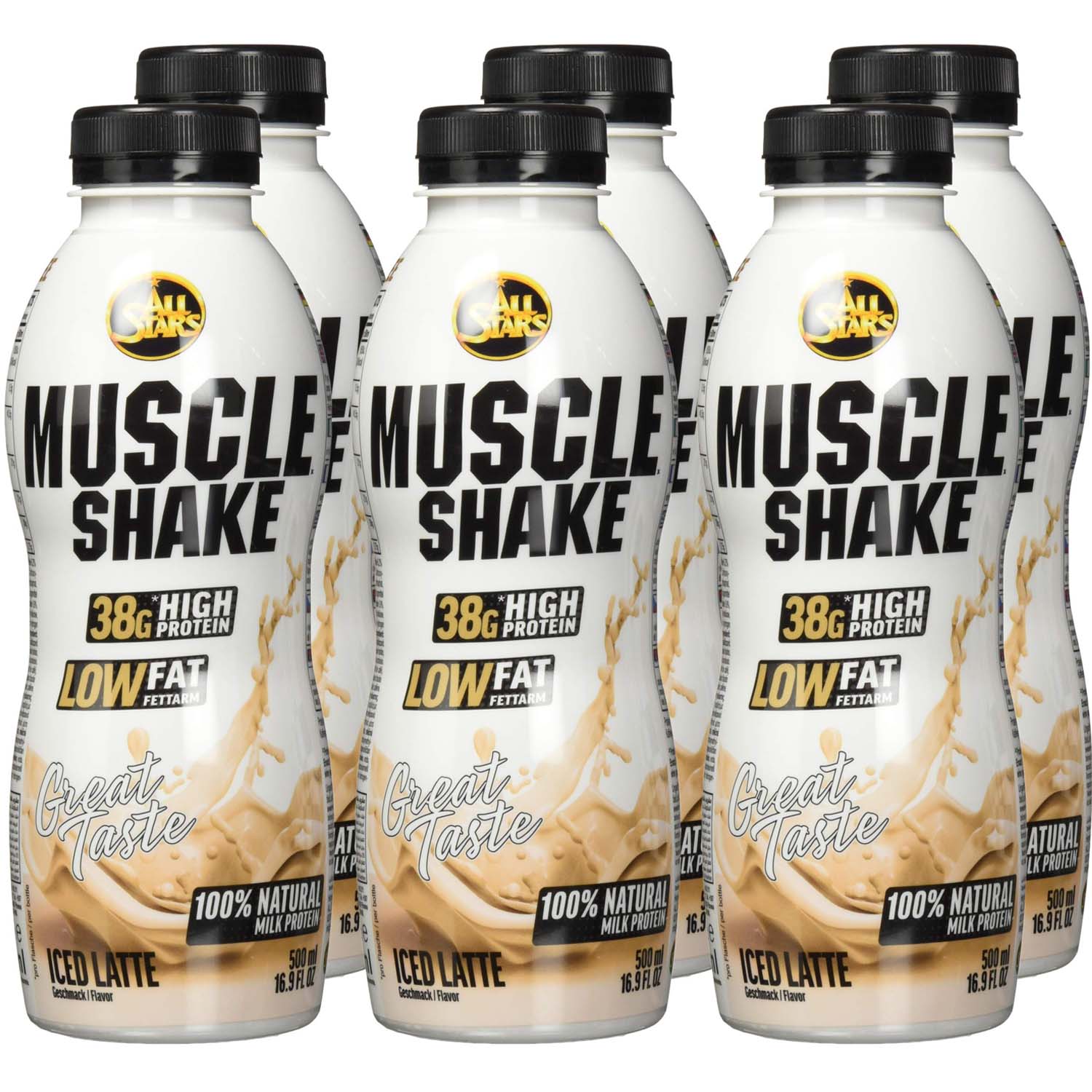 The All Stars Protein Muscle Shake in Vanilla flavor is a convenient, readytodrink protein solution designed to support muscle nourishment. Each box contains six individual shakes, each providing up to 40 grams of highquality protein. The shake is formulated to be low in fat, with a maximum of 2 grams per serving, and contains only 25 grams of carbohydrates, making it a balanced option for those monitoring their macronutrient intake.