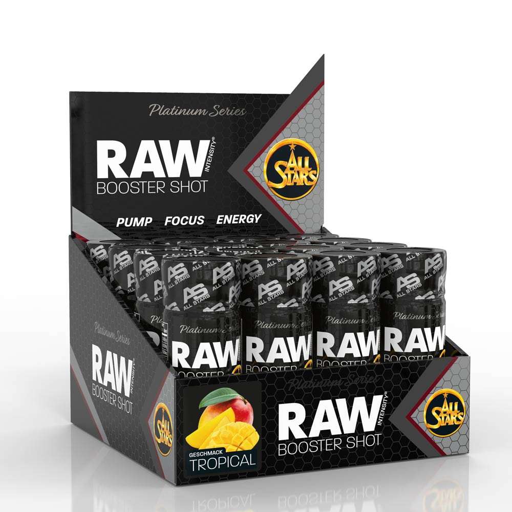 All Stars Raw Booster Shots, Tropical, Box of 12 Shots, provide an intense energy boost for maximum workout intensity. These readytodrink shots are designed for convenience and effectiveness, making them ideal for onthego use. Each shot contains the RAW Power Matrix, which supports pump, energy, and focus during training. The liquid form ensures rapid absorption of ingredients.