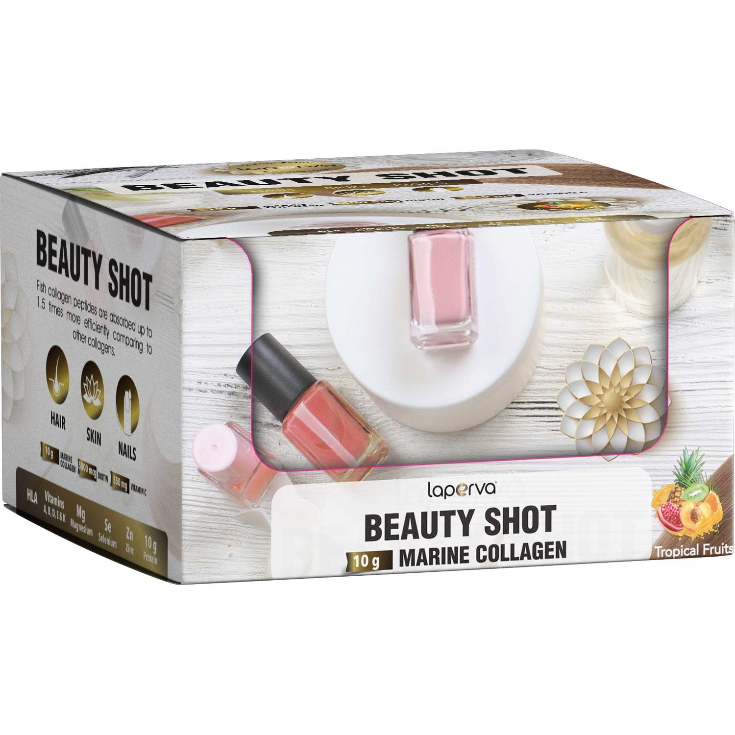 Laperva Beauty Shot Marine Collagen, Tropical Fruits, Box of 12 Shots