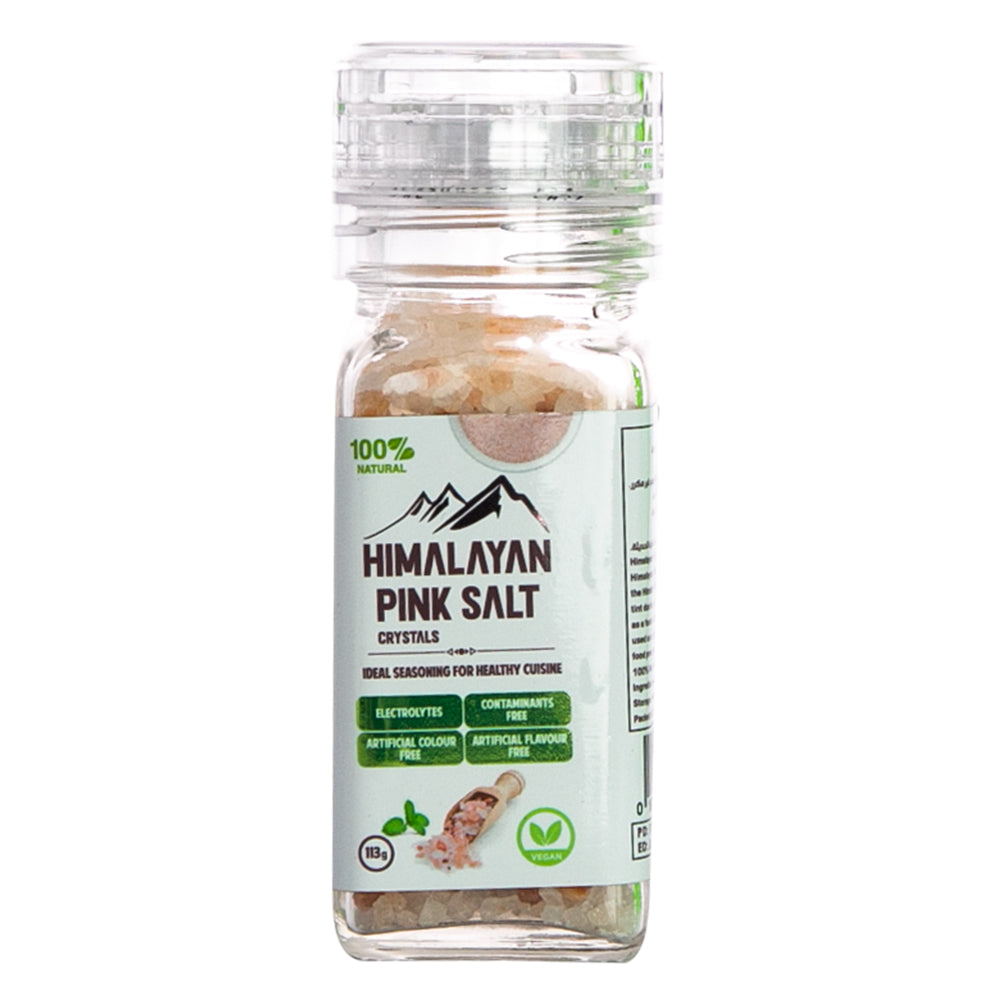 Laperva Himalayan Pink Salt Crystals, 113 Gm, is a natural rock salt sourced from the Himalayan mountains. This salt is known for its distinctive pink hue, which is due to its rich mineral content. It is 100% natural and unrefined, making it a healthy choice for various culinary uses.