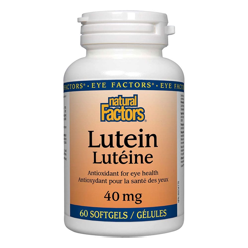 Natural Factors Lutein, 40 mg, 60 Softgels, provides a highpotency source of lutein and zeaxanthin, two carotenoid antioxidants concentrated in the eyes. These antioxidants protect the lens and retina from damage caused by free radicals and sunlight exposure. The product uses LuteinRich, which is naturally sourced from marigold petals, nonirradiated, and GMOfree.