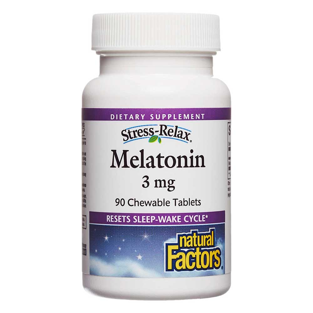 Natural Factors Melatonin is beneficial for those experiencing insomnia, including agerelated declines in melatonin production in the elderly. Each bottle contains 90 chewable tablets, with each tablet providing 3 mg of melatonin. This dosage is effective in helping users fall asleep faster and improving the quality and duration of sleep.