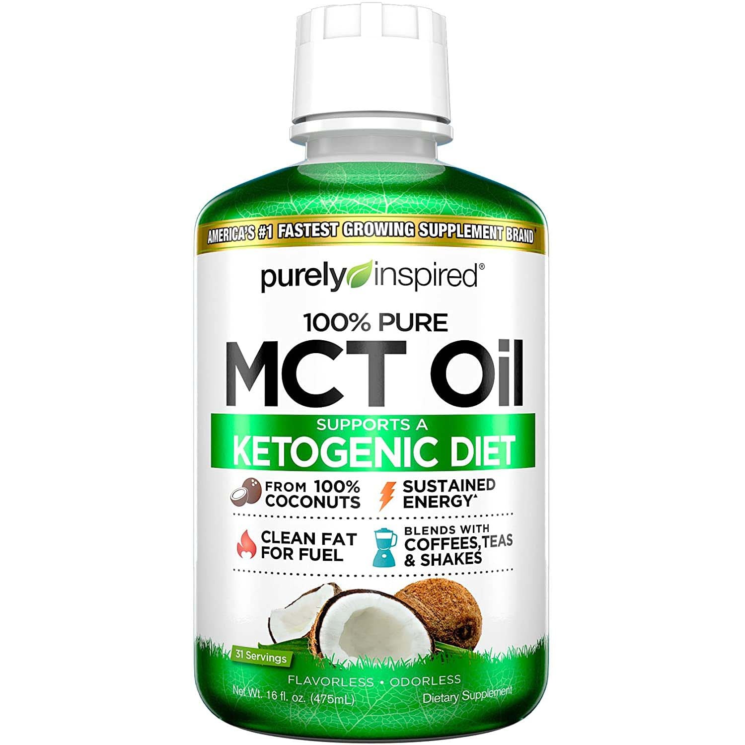 Purely Inspired 100% Pure MCT Oil is a dietary supplement designed to support ketogenic and Paleo diets. This product is made from 100% nonGMO coconuts and is packed with mediumchain triglycerides (MCTs), specifically capric and caprylic acids. These MCTs are rapidly absorbed and converted into sustained energy, rather than being stored as fat.